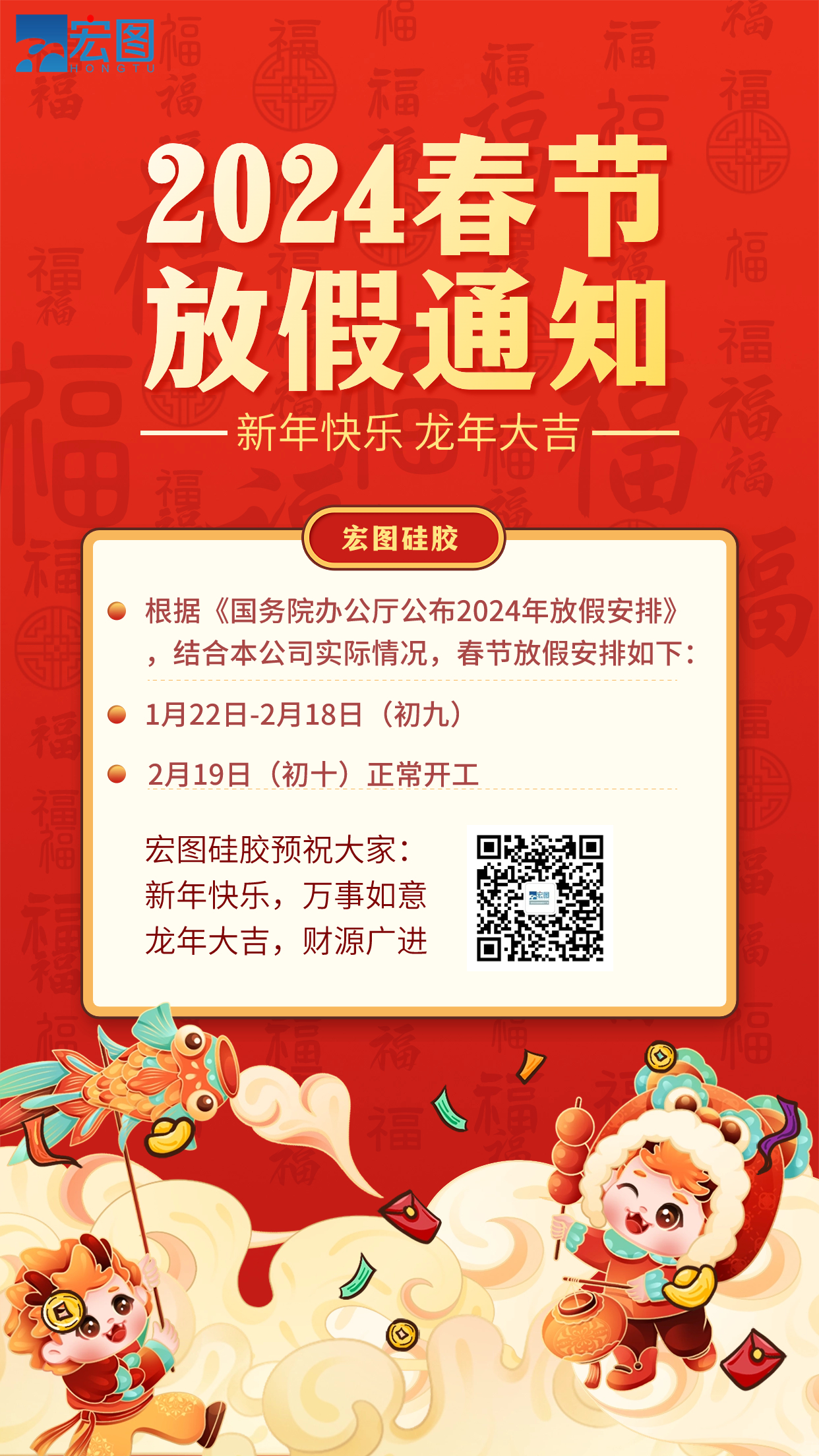 宏圖硅膠2024年春節放假通知!